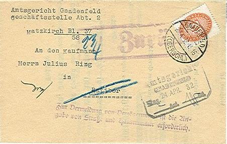 Brief wurde versendet am 22.04.1932 vom Amstgericht Gnadenfeld / Geschäftsstelle Abt.2
