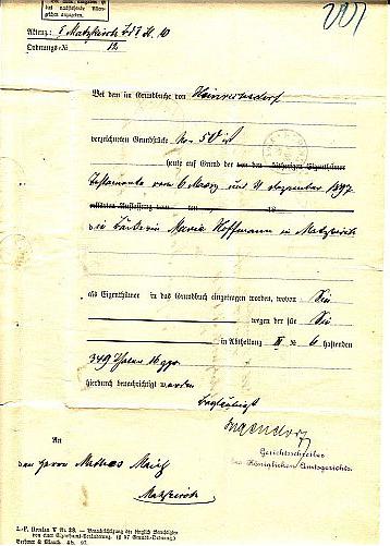 ... vom 6 März ... 31 September 1897 ... Bäckerin Marie Hoffmann in Matzkirch als