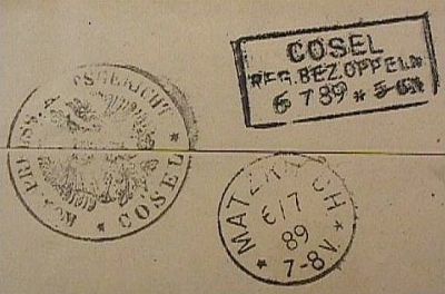 Brief von Königlichen Amtsgericht Cosel nach Dobroslawitz abgestempelt