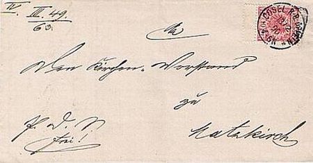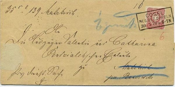 Altes Brief von Cosel R.B. Oppeln nach Matzkirch vom 14.02.1890